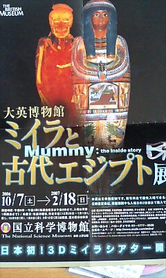 エジプト展は、今回の主役である神官のミイラをCTスキャンにかけ、そのデータとCGをつかった3D映像が見れる。(今日の日記の題名はこの神官の名前)